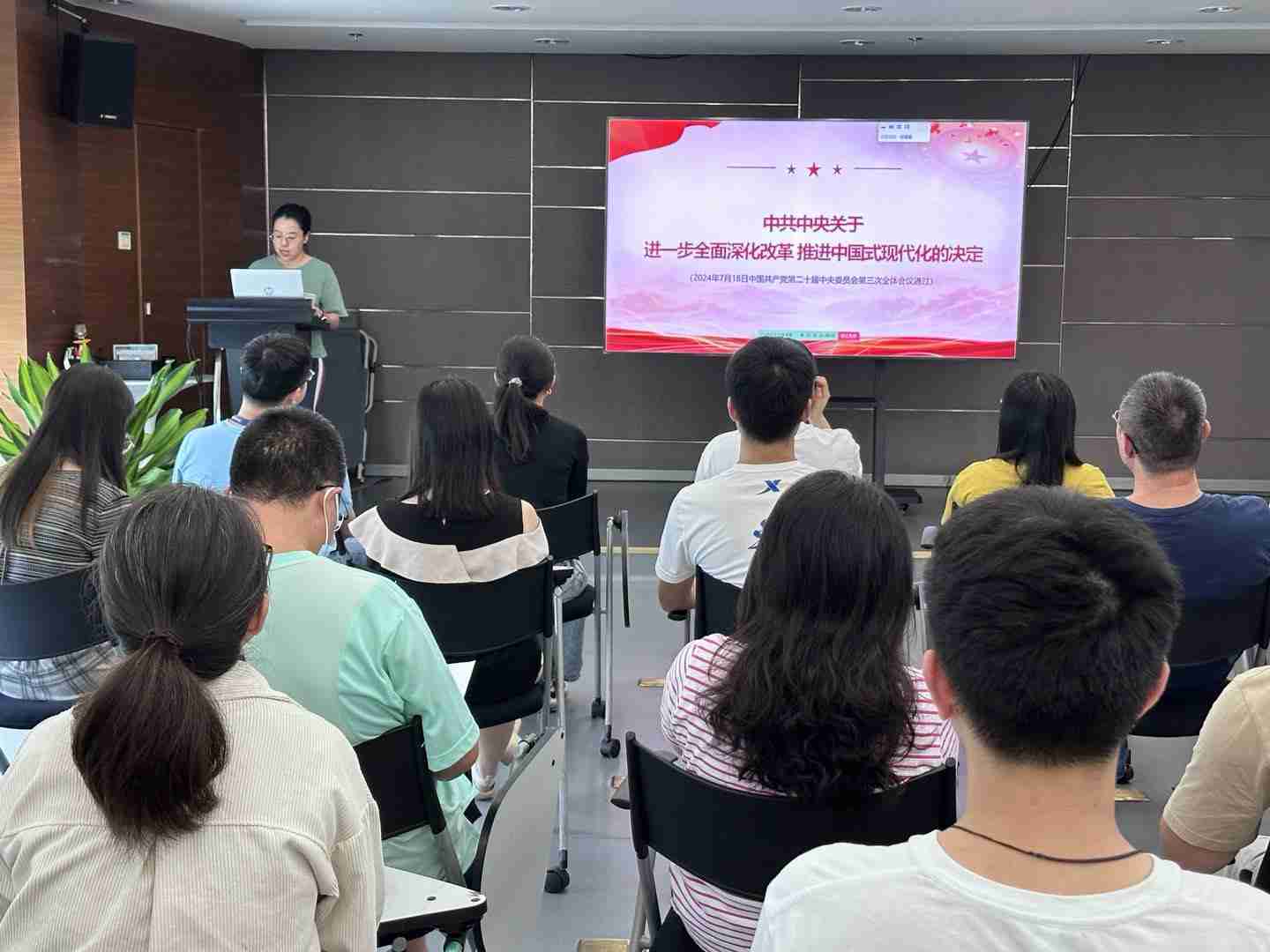 925日,,,JIUYOU.COM党总支召开会议,,,,聚焦党的二十届三中全会审议通过的《中共中央关于进一步全面深化改革 推进中国式现代化的决定》(以下简称《决定》)原文,,专题学习全会精神,,,,进一步提高思想认识、、、强化理论武装。。。。党总支全体党员、、发展对象、、、、入党积极分子参加会议。。。