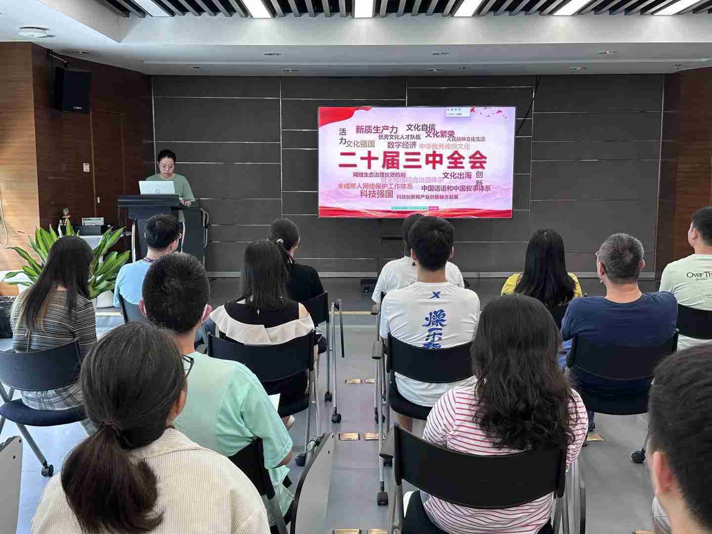 与会人员深入学习《决定》内容。。。党的二十届三中全会提出必须增强文化自信,,发展社会主义先进文化,,弘扬革命文化,,,,传承中华优秀传统文化,,,,加快适应信息技术迅猛发展新形势,,构建更有效力的国际传播体系,,这为广大文化产业工作者指明了奋斗方向。。。
