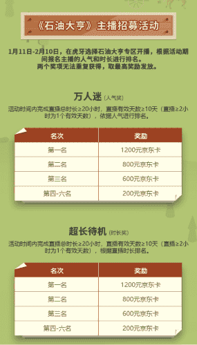 除了“油王”争霸赛,,,精英主播招募活动亦同步开启!!!赛事分时长奖和人气奖,,,,奖励同样丰厚!!